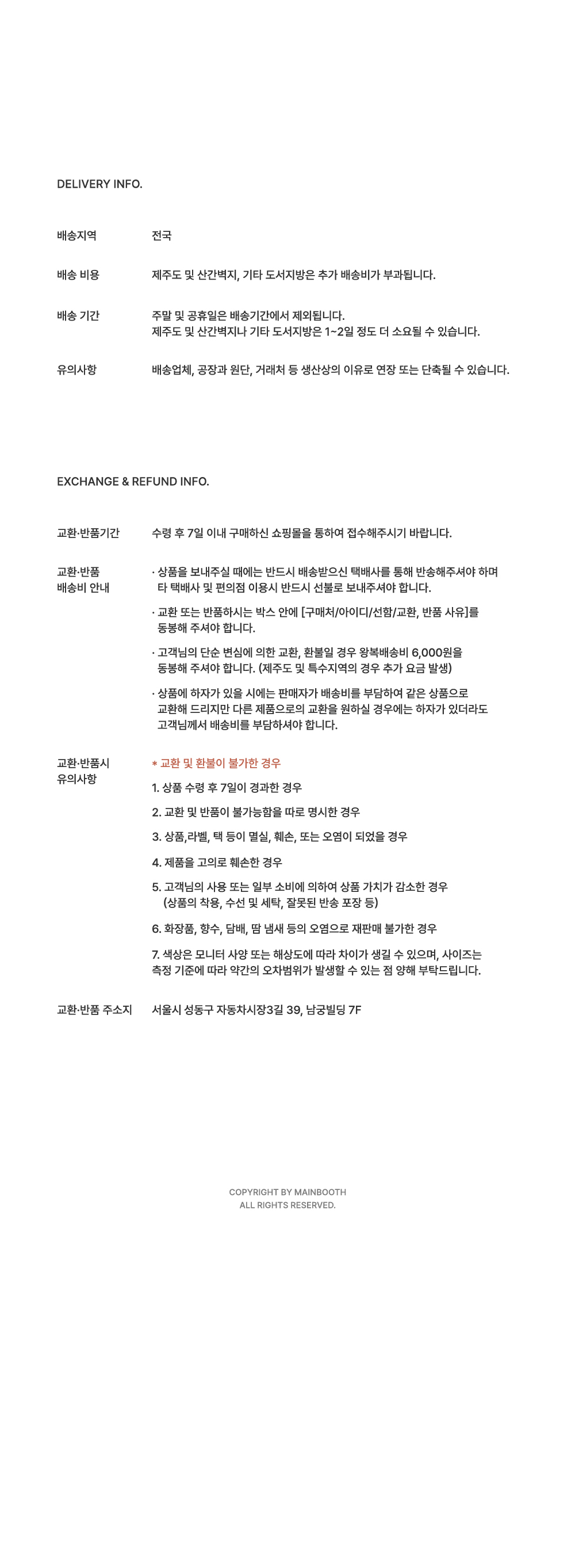 교환 및 반품 안내