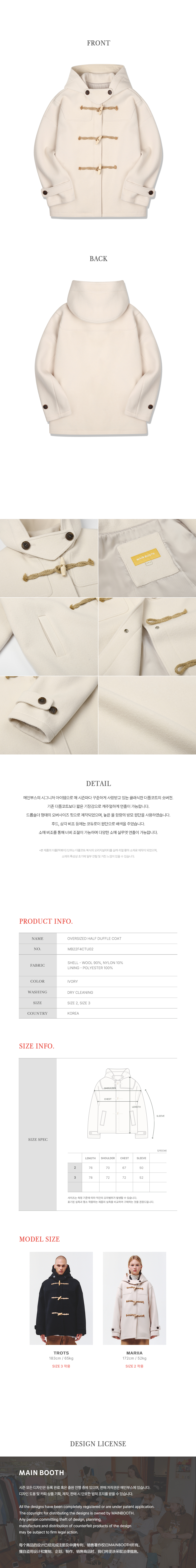 메인부스 오버사이즈 하프 더플 코트 아이보리