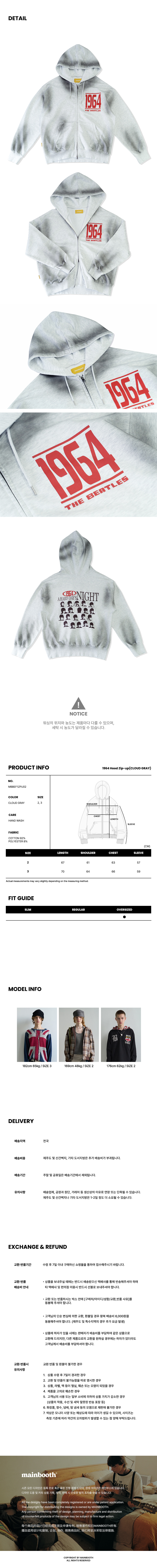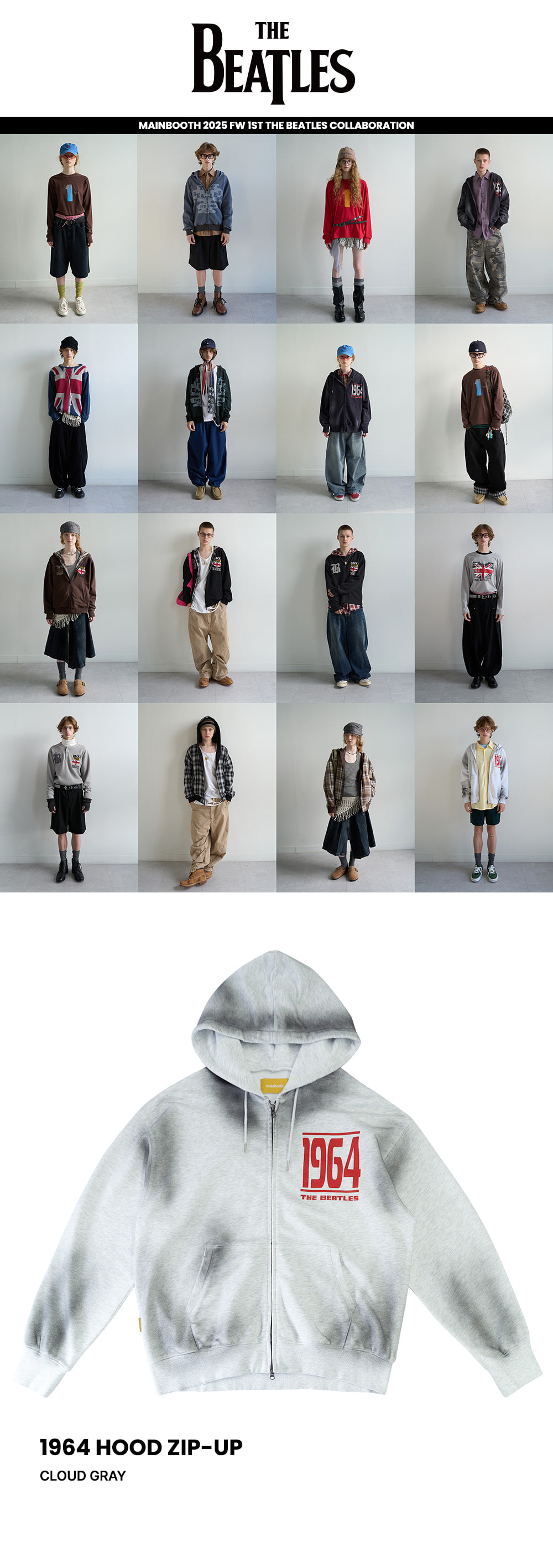 메인부스 비틀즈 x 1964 후드 집업 클라우드 그레이