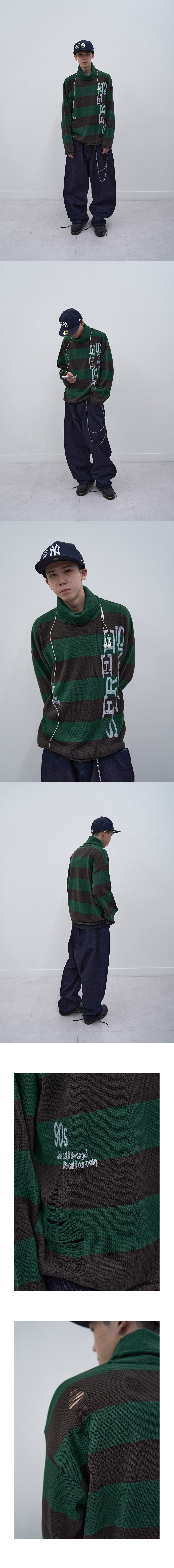 메인부스 프리 스테인스 데미지 스웨터 그린