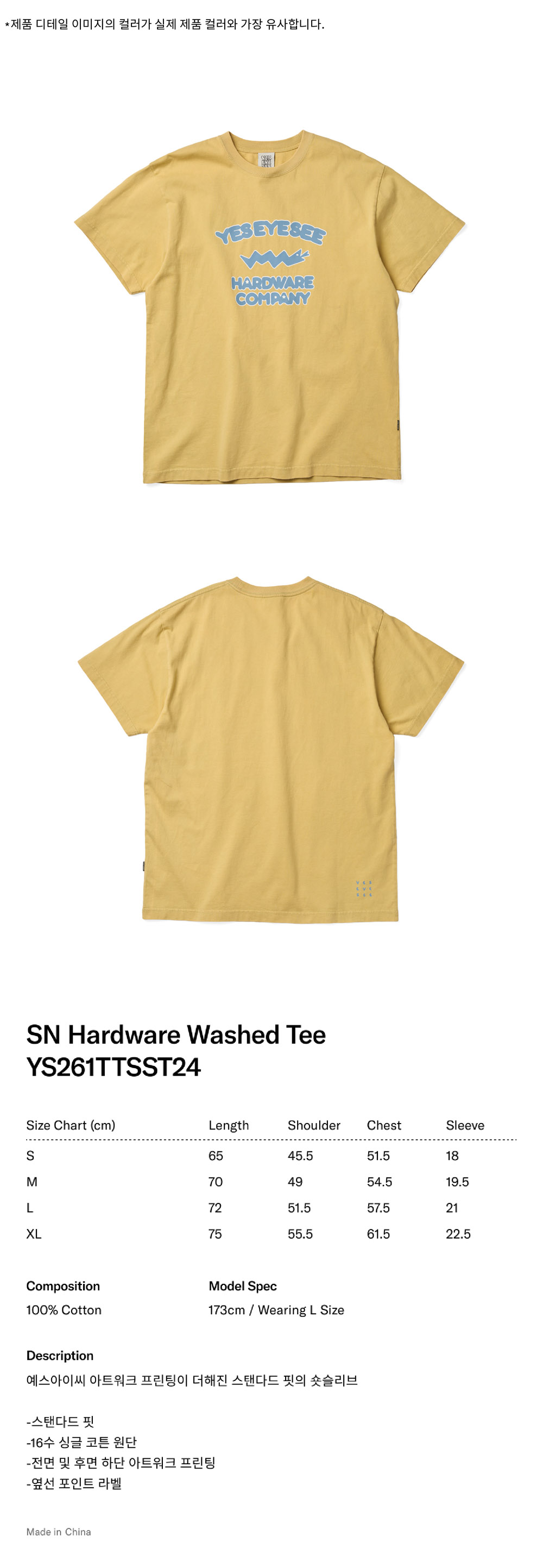 [더블적립]예스아이씨 에스엔 하드웨어 워시드 티 라이트 머스타드