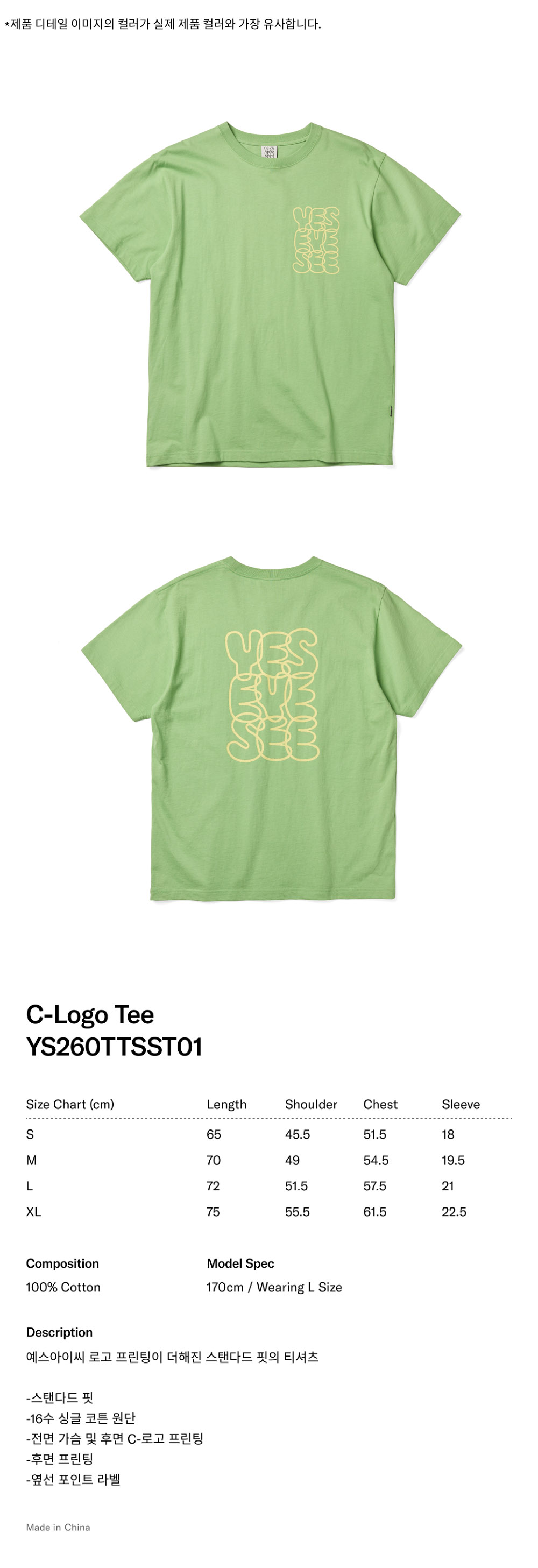 [더블적립]예스아이씨 씨로고 티 라이트 그린