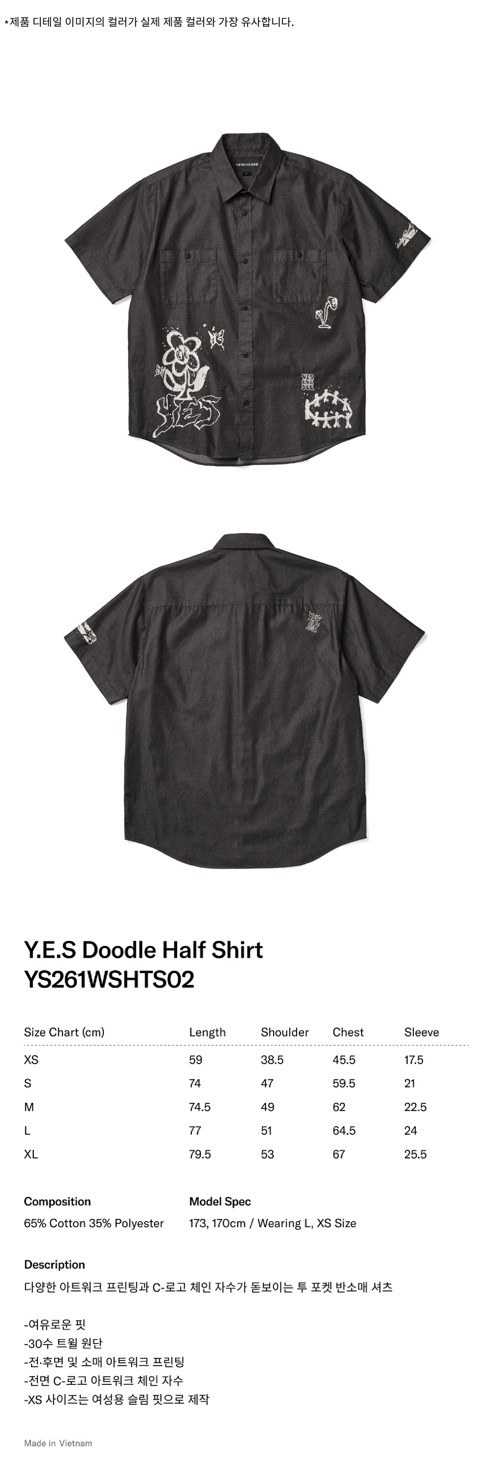 [더블적립]YESEYESEE Y.E.S Doodle Half Shirt Black