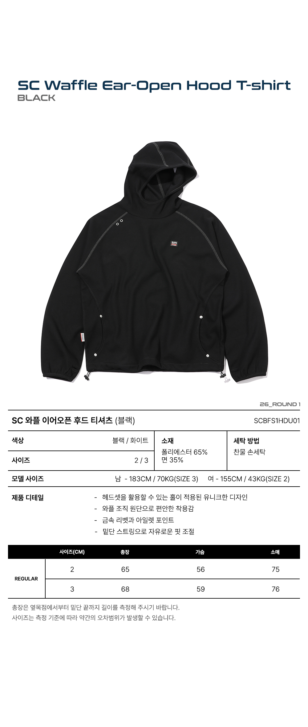 스포츠챔버 SC 와플 이어오픈 후드 티셔츠 블랙