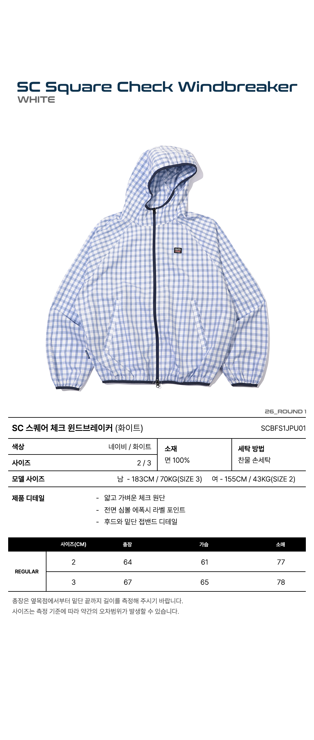 스포츠챔버 SC 스퀘어 체크 윈드브레이커 화이트