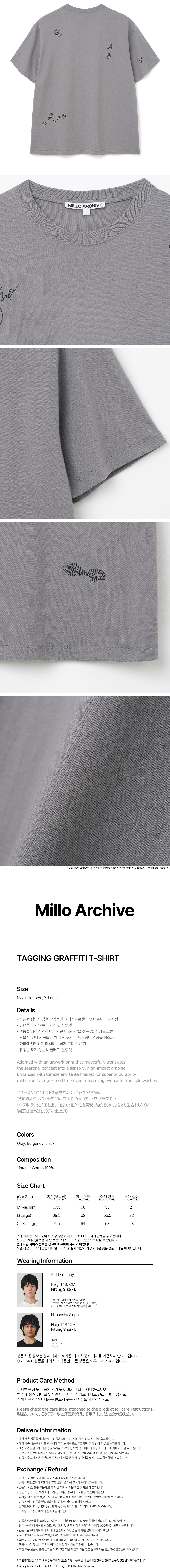 밀로 아카이브 태깅 그래피티 티셔츠 그레이