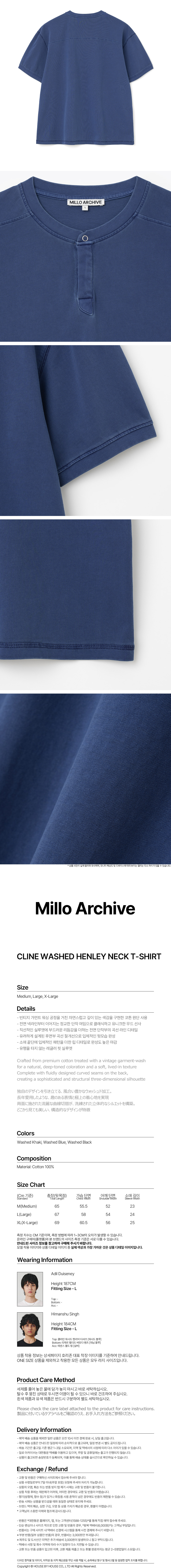 밀로 아카이브 클라인 워시드 헨리넥 티셔츠 워시드 블루