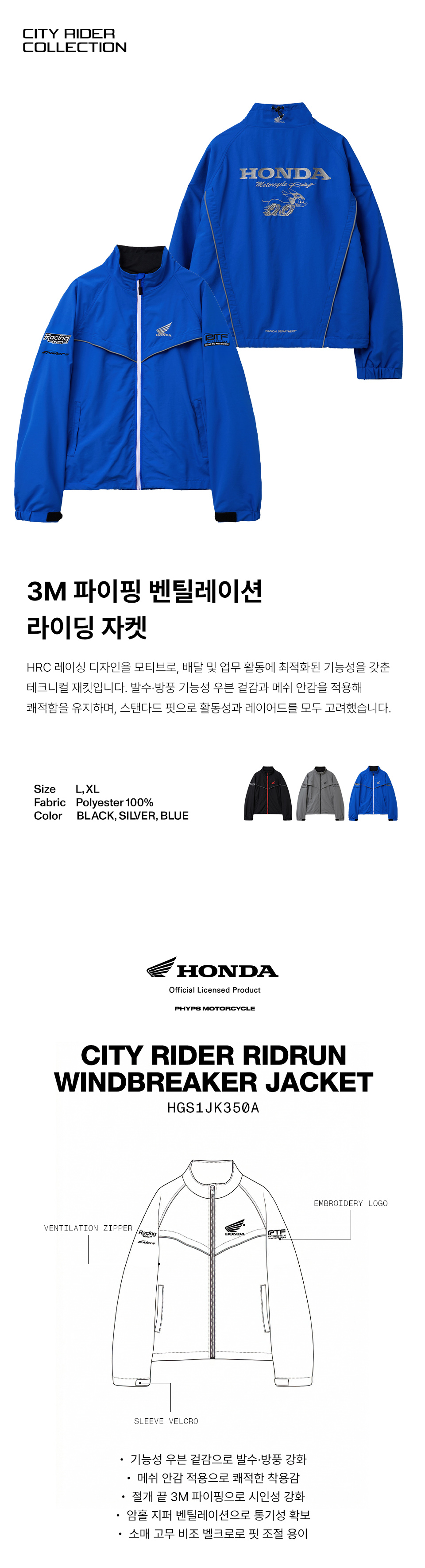혼다 시티 라이더 Ridrun 윈드브레이커 자켓 블루