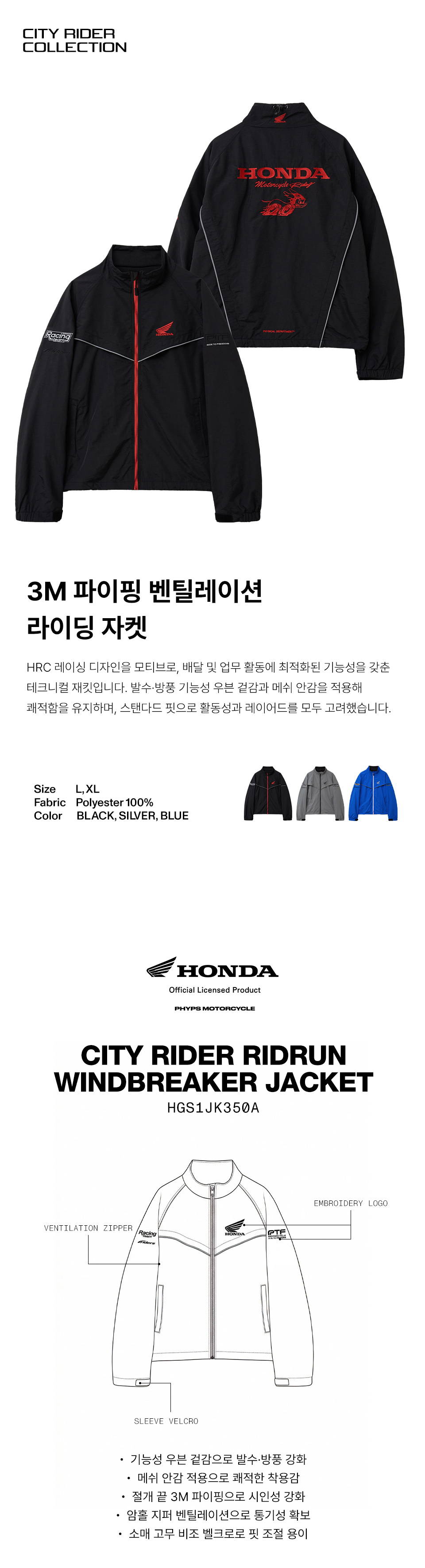혼다 시티 라이더 Ridrun 윈드브레이커 자켓 블랙