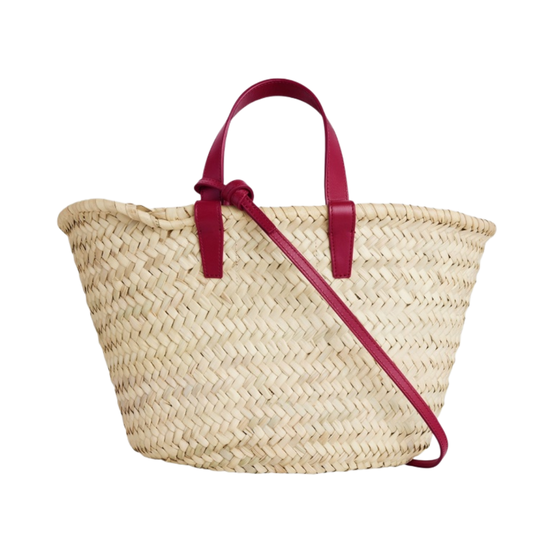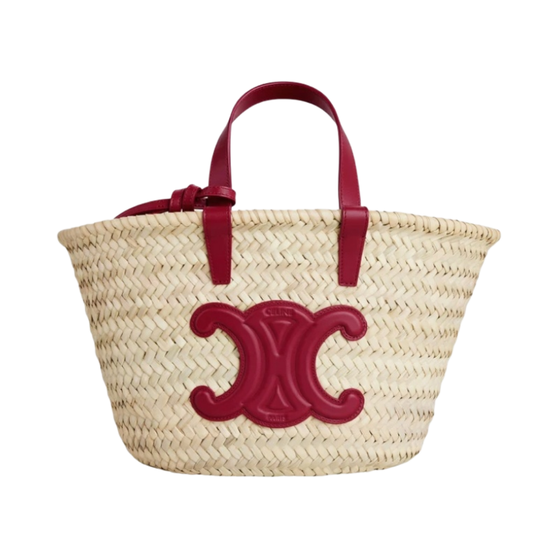 Celine Teen Triomphe Celine Classic Panier in Palm Leaves and Calfskin Carmin