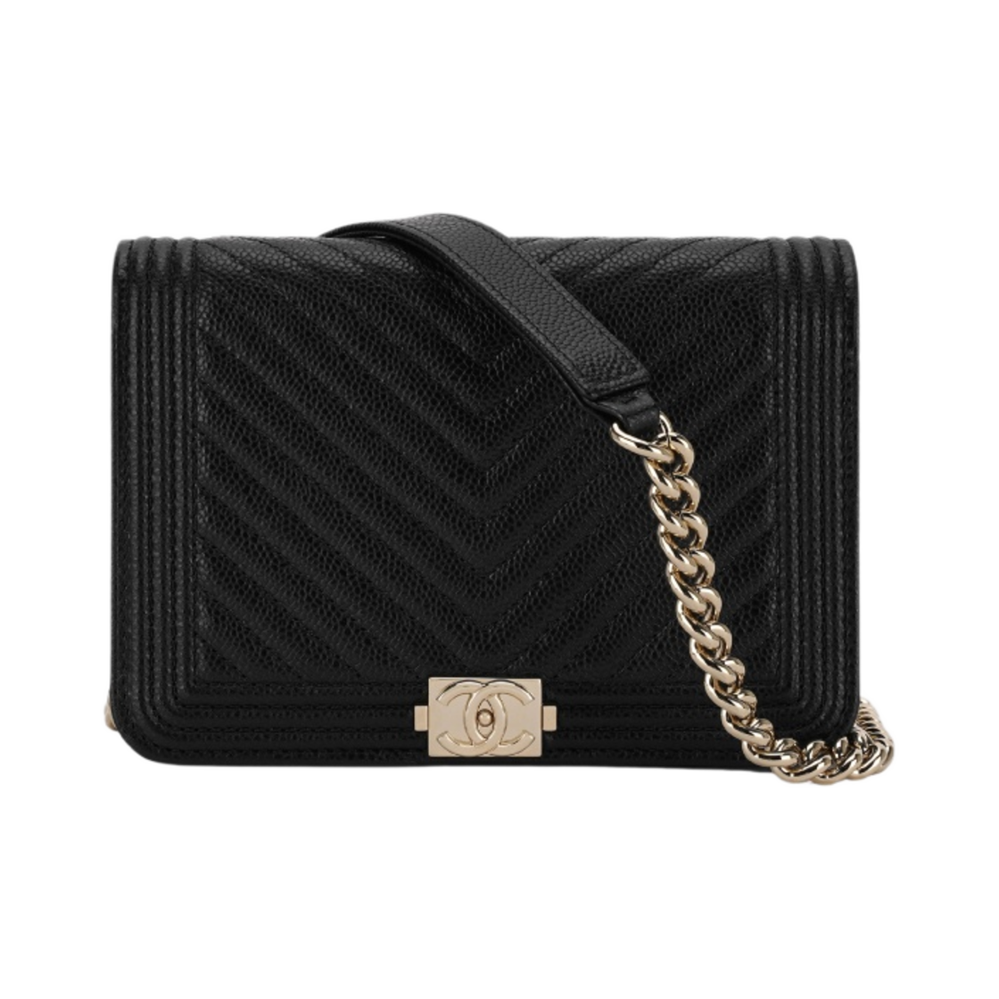 샤넬 보이 샤넬 체인 미니백 그레인드 카프스킨 & 골드 메탈 블랙