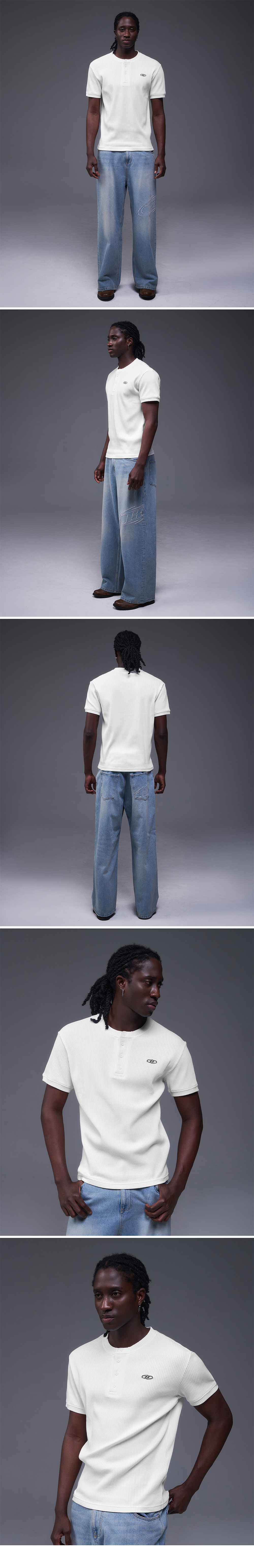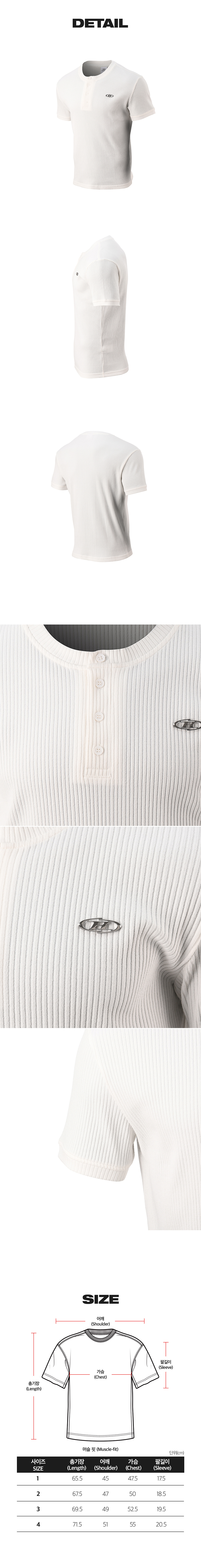 본투윈 B 펜던트 헨리넥 머슬핏 티셔츠 화이트