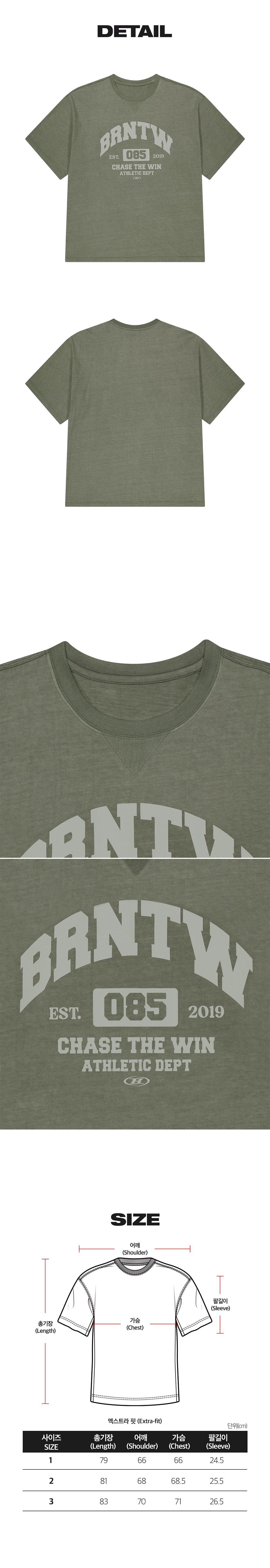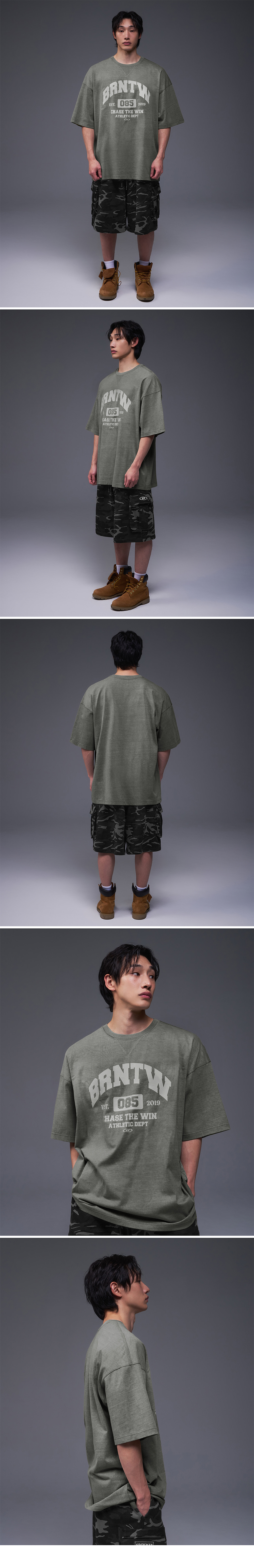 본투윈 BRNTW 피그먼트 엑스트라핏 티셔츠 카키
