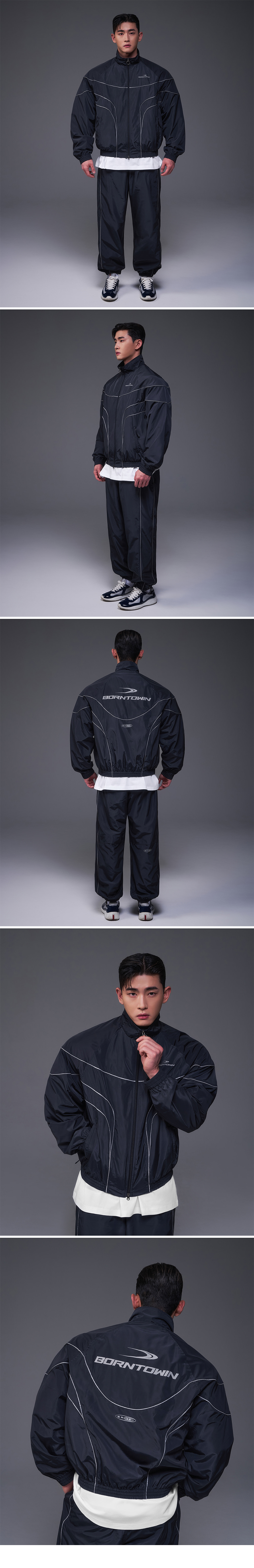 본투윈 우븐 파이핑 트랙 자켓 네이비