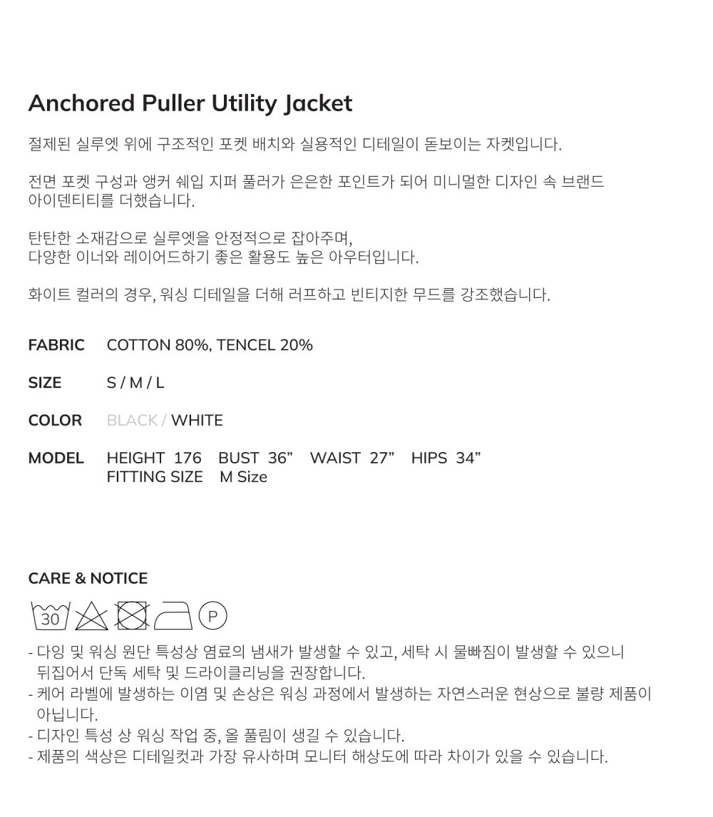 비엘알 앵커드 풀러 유틸리티 재킷 화이트