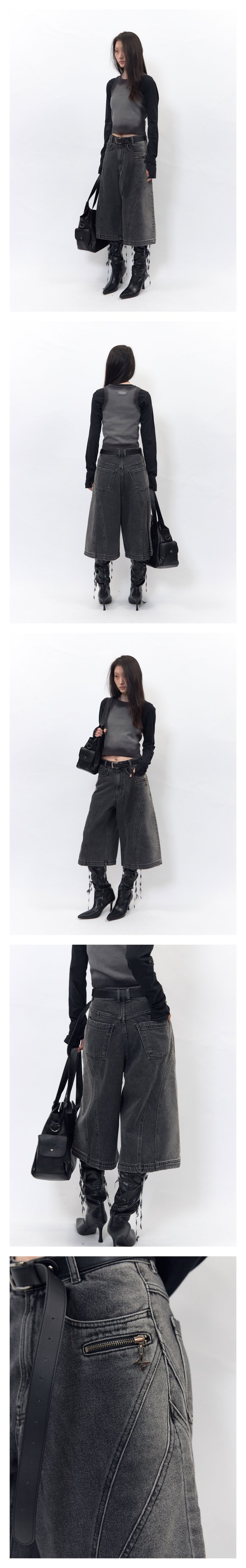 BLR Arc Line Bermuda Washing Denim Pants Grey