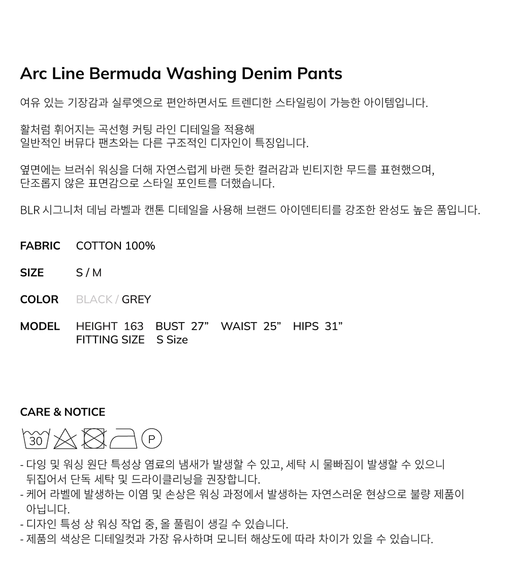 비엘알 아크 라인 버뮤다 워싱 데님 팬츠 그레이