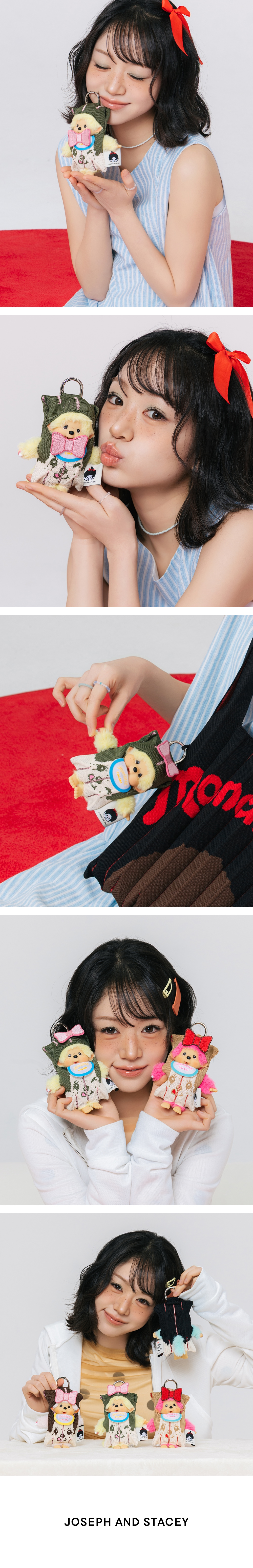 [KREAM 단독][사은품증정] JOSEPH&STACEY Lucky Pleats Knit Mini Multi Pouch Monchhichi Girl Khaki with Ribbon Wappen Pink
