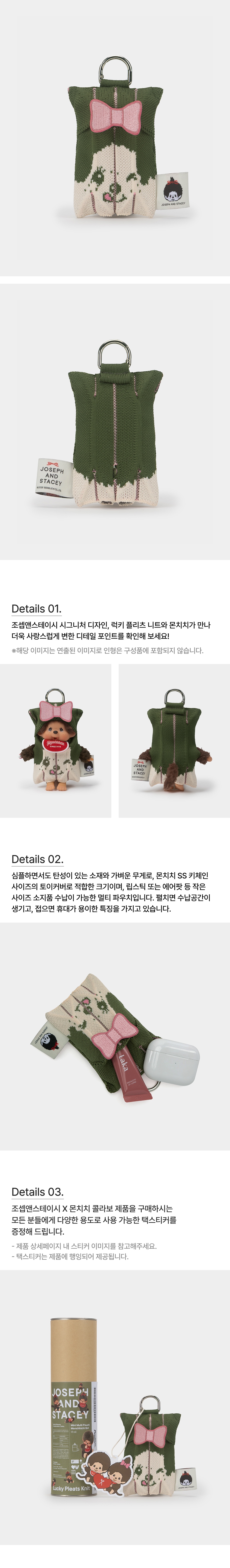 [KREAM 단독][사은품증정] 조셉앤스테이시 럭키 플리츠 니트 미니 멀티 파우치 몬치치 걸 카키 + 리본 와펜 핑크