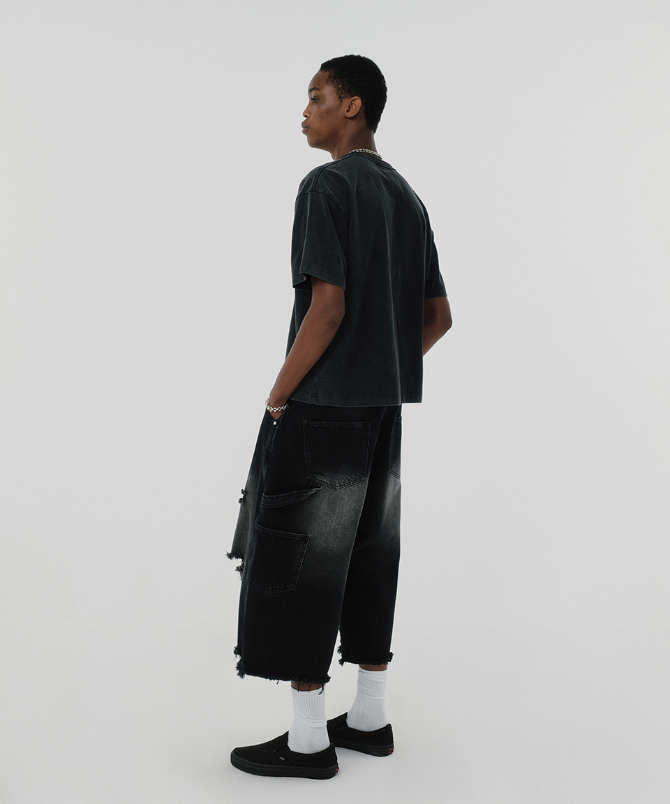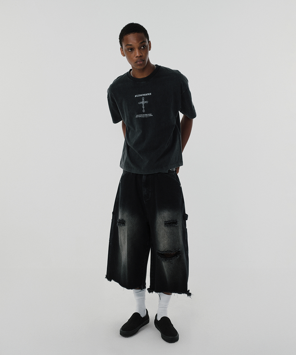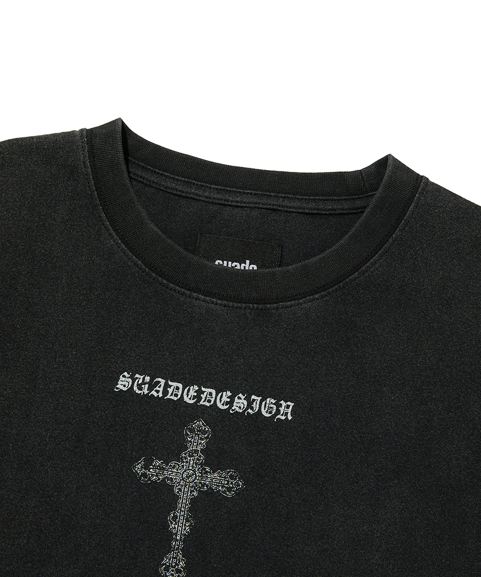 스웨이드 크로스 크롭 티 워싱 블랙