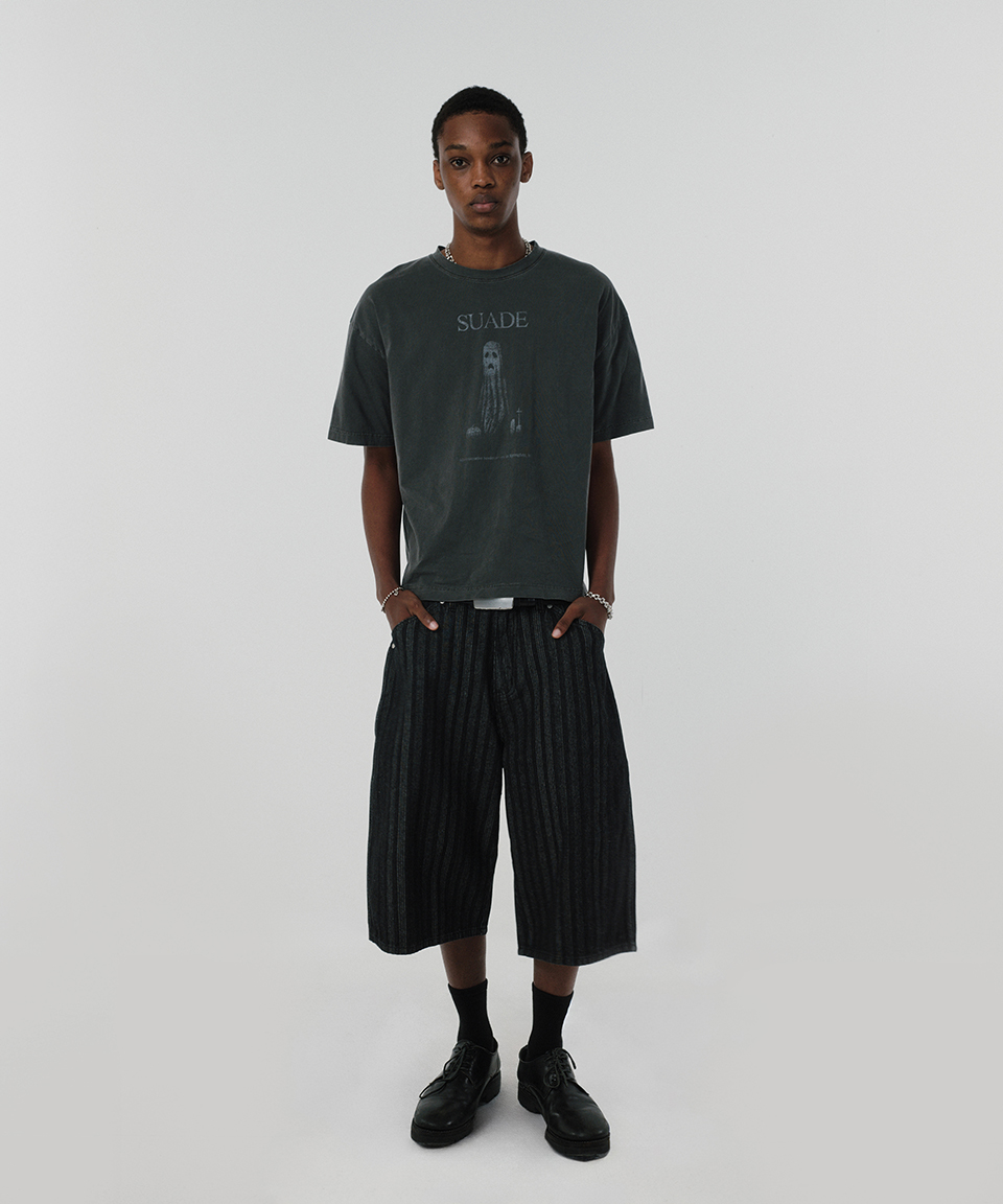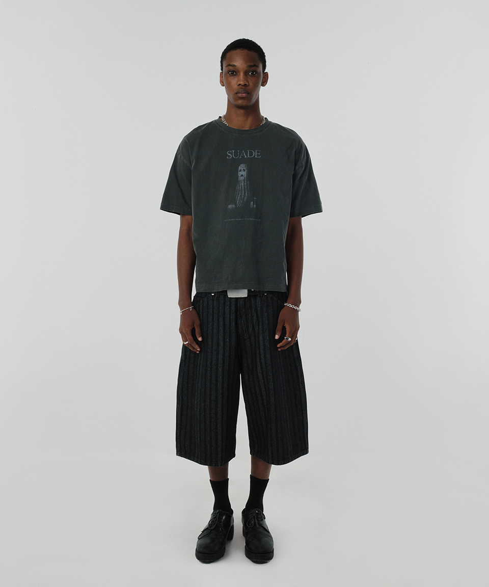 스웨이드 고스트 크롭 티 피그먼트 블랙