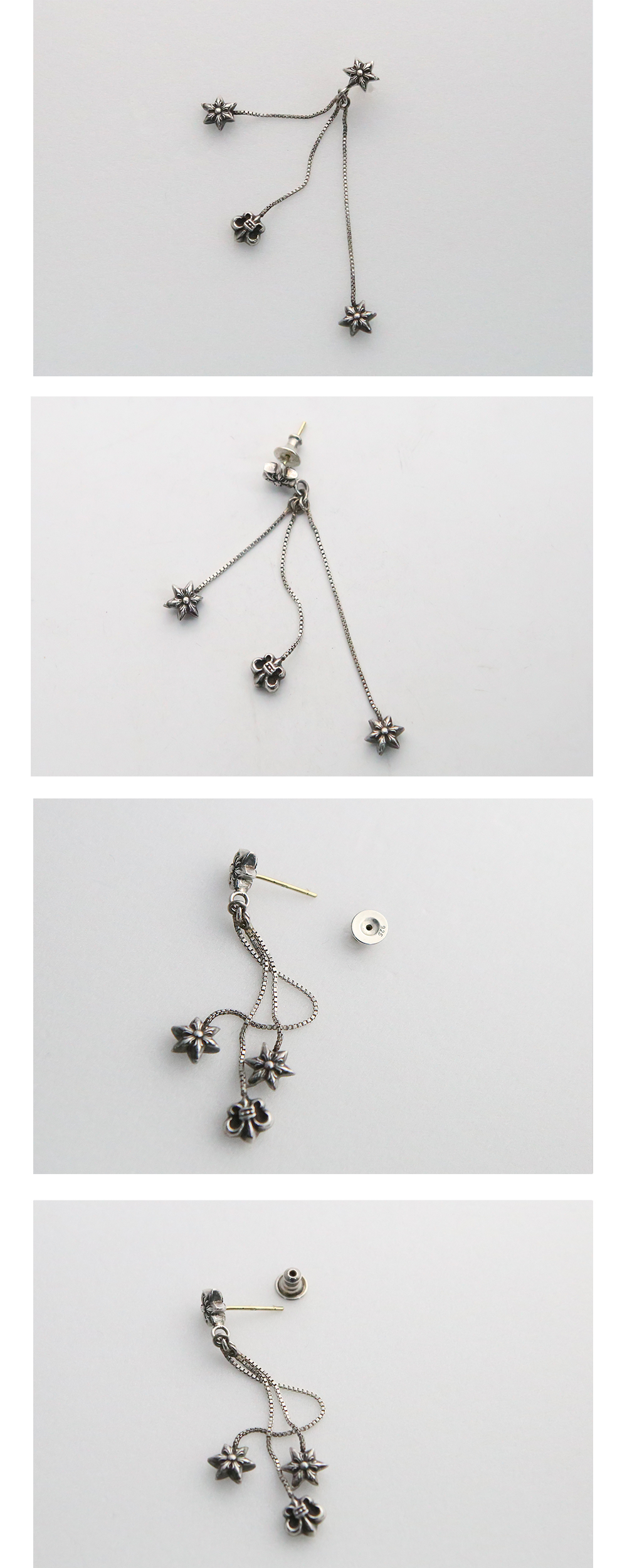Hansroom Chrome Hearts JoJo Earring 한스룸 크롬하츠 조조이어링 *상품 상태 중고 B등급 *주의 수제작 브랜드 특성상 개체차이가 있을 수 있음 *소재 925실버 *치수 길이 : 6.6cm (측정 방법에 따라 사이즈에 일부 오차가 있을 수 있습니다.) *구성품: 한스룸 보증서, 폴리싱천 ,악세사리 케이스
