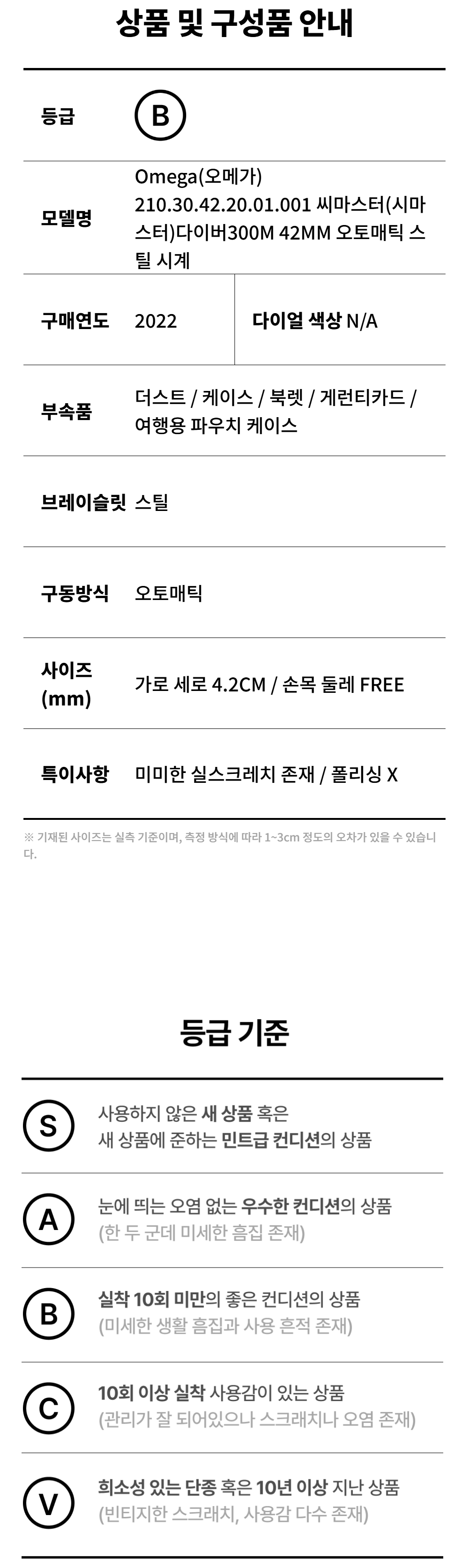 오메가 씨마스터 다이버300M 42MM 오토매틱 스틸 시계aa61469