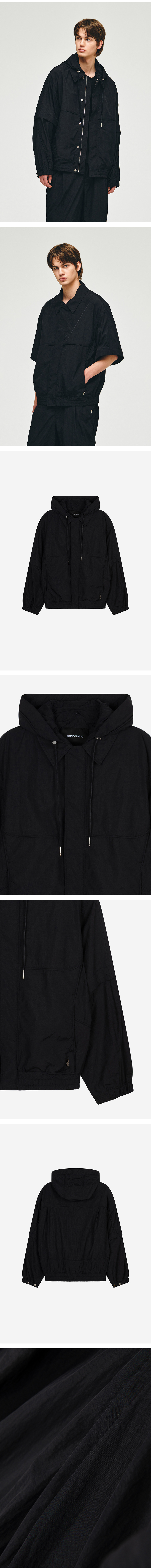 - BI3PT353BK 팬츠와 세트 구성 - 후드, 슬리브 디터쳐블 점퍼 - 후드와 슬리브가 탈부착 가능한 유틸리티 스포티 아이템 - 구조적인 파이핑 디테일 - 홑겹 사양으로 라이트한 착용감