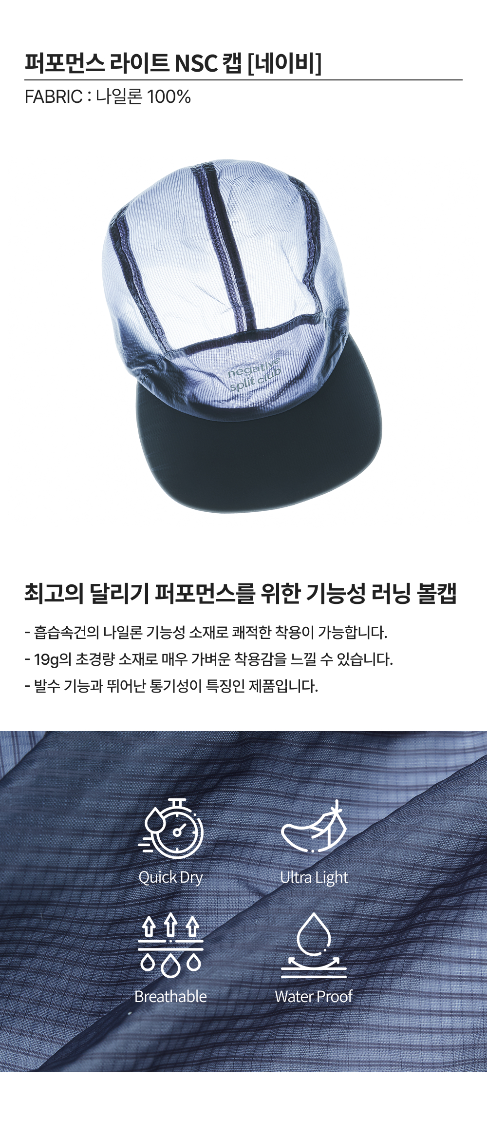 네거티브 스플릿 클럽 퍼포먼스 라이트 NSC 캡 네이비