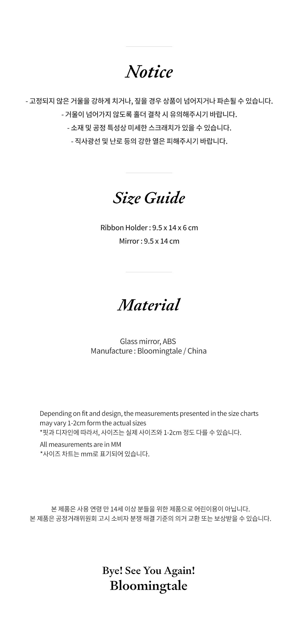 블루밍테일 리본 탁상 거울 블루