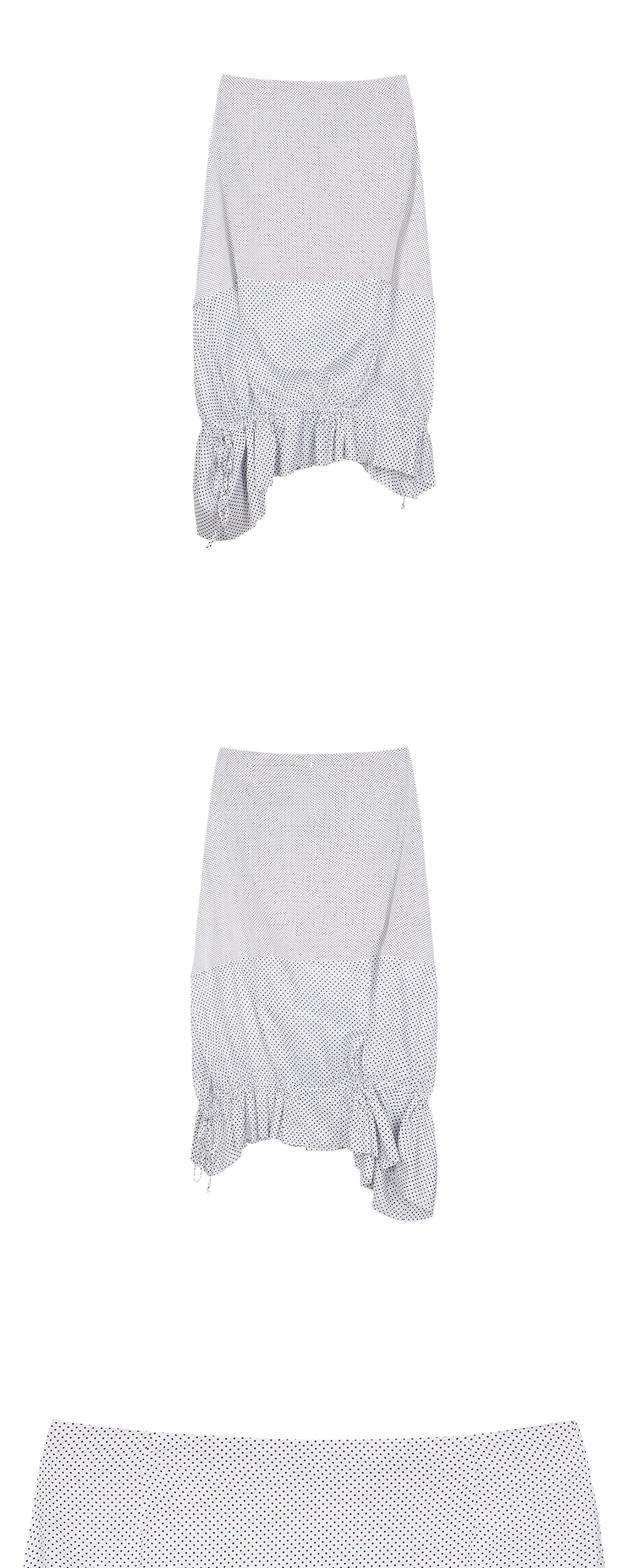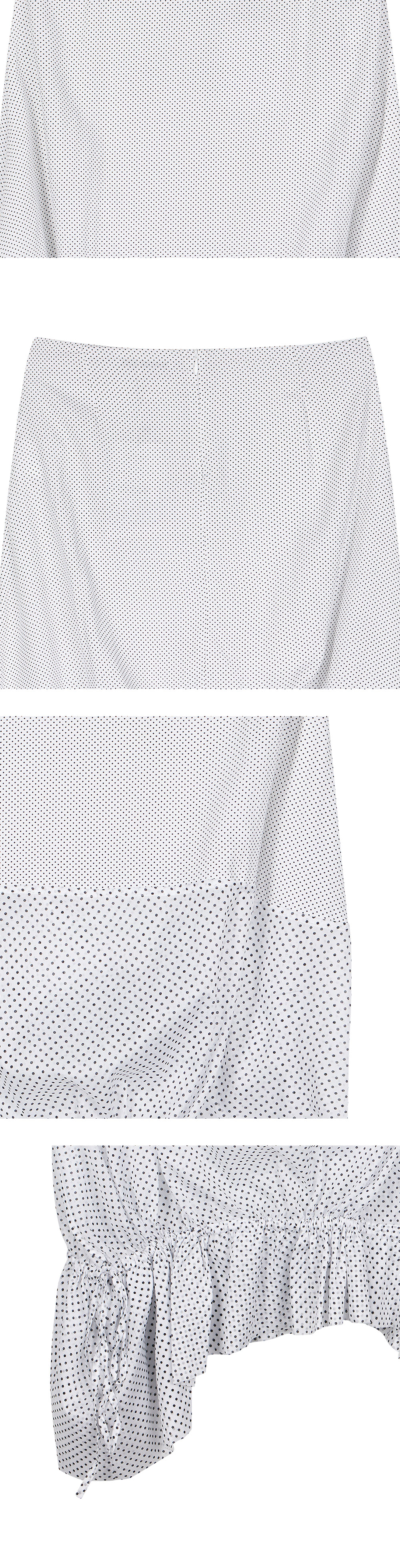 레이브 리뷰 우먼 비타 스커트 화이트 블루 스몰 폴카 도트 입니다. - 상단과 하단의 도트 크기가 다른 패치워크 스타일의 디자인 - 밑단 라인을 따라 들어간 풍성한 셔링과 주름 디테일 - 불규칙하게 떨어지는 비대칭 헴라인 실루엣 - 화이트 바탕에 블루 컬러의 스몰 폴카 도트 패턴