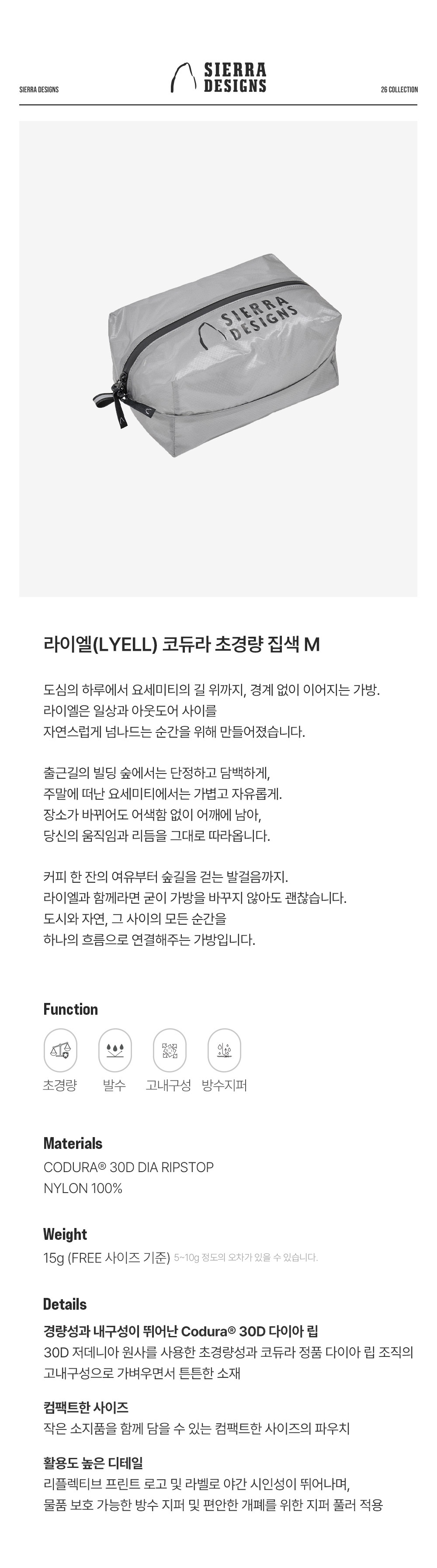 시에라디자인 라이엘 코듀라 초경량 집색 M 그레이