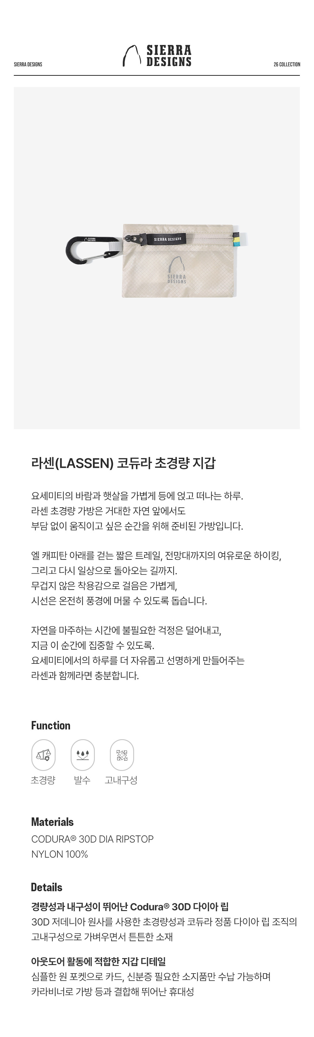 시에라디자인 라센 코듀라 초경량 지갑 아이보리