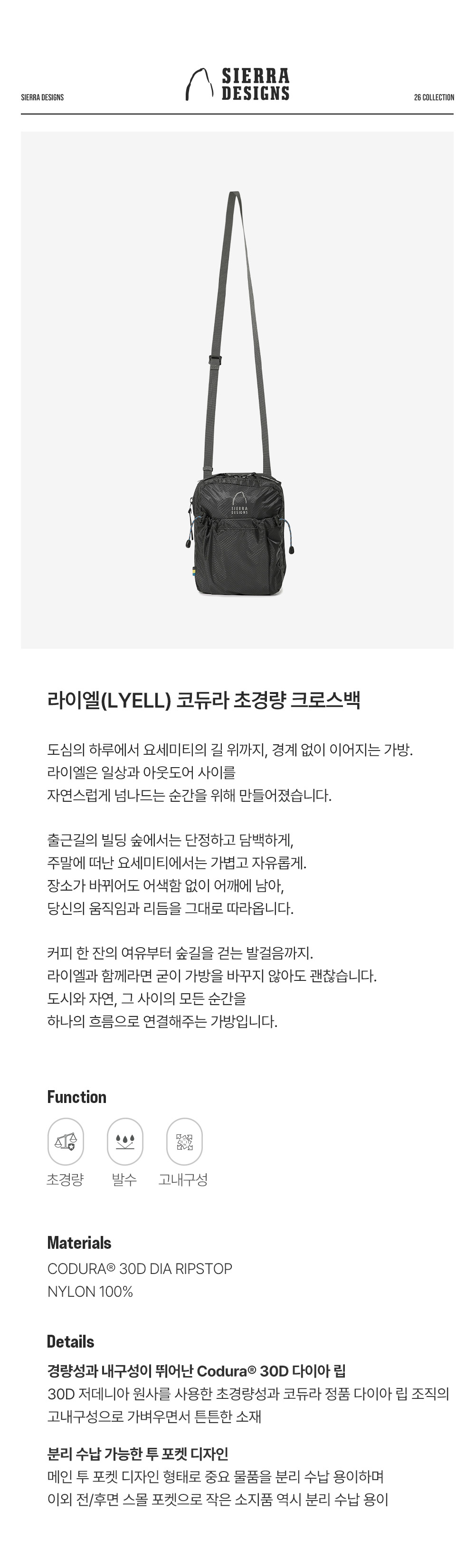 시에라디자인 라이엘 코듀라 초경량 크로스백 차콜