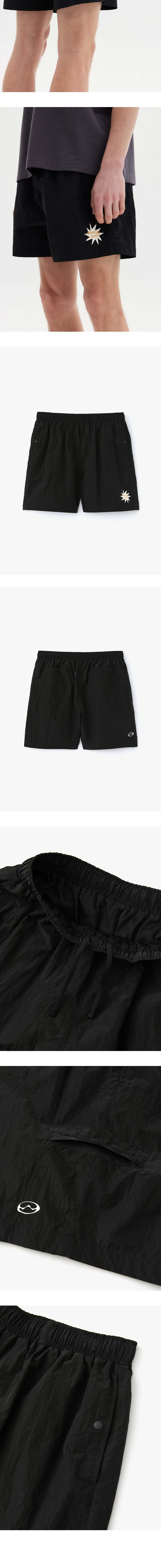 Shell Nylon 100% 1 : Waist 34.5 cm / Hip 58 cm / Thigh 36 cm / Hem 34 cm / Outseam 43.5 cm / Rise 32.5 cm 2 : Waist 37 cm / Hip 60 cm / Thigh 37.5 cm / Hem 34.5 cm / Outseam 45.5 cm / Rise 33.5 cm 3 : Waist 39.5 cm / Hip 62 cm / Thigh 39 cm / Hem 35 cm / Outseam 47.5 cm / Rise 34.5 cm Model : 184cm tall and wearing a size 2 Machine wash, separately Do not dry clean Do not tumble dry Do not use bleach