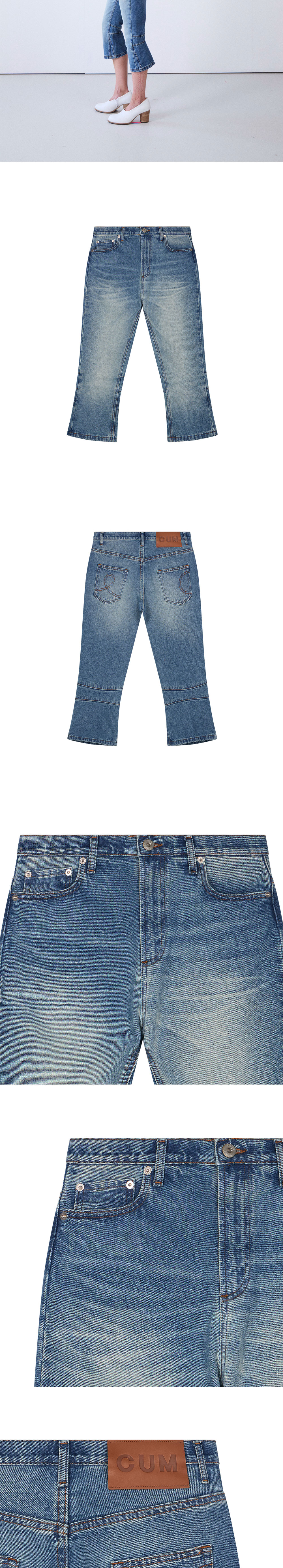 에드워드 커밍 우먼 니 절크 카프리 에이지드 라이트 블루입니다. - 무릎 아래로 떨어지는 짧은 카프리 기장 - 전체적인 에이지드 워싱 처리가 가미된 라이트 블루 컬러 - 전면 허벅지부터 무릎까지 이어지는 자연스러운 페이딩 디테일 - 밑단으로 갈수록 살짝 넓어지는 실루엣