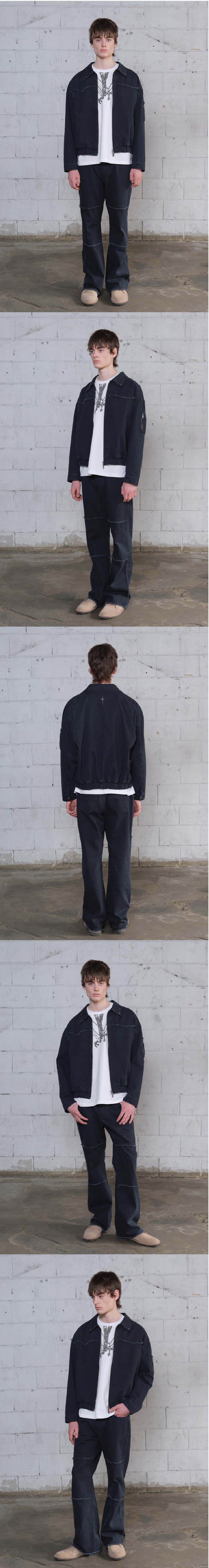 메아 빈티지 워시드 스터드 봄버 다크 네이비