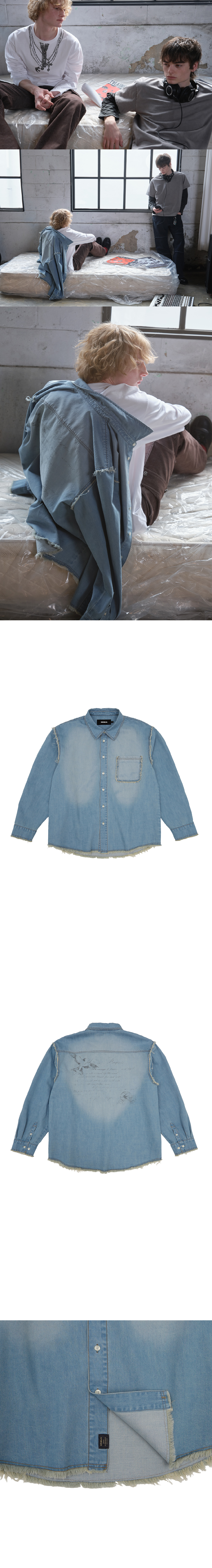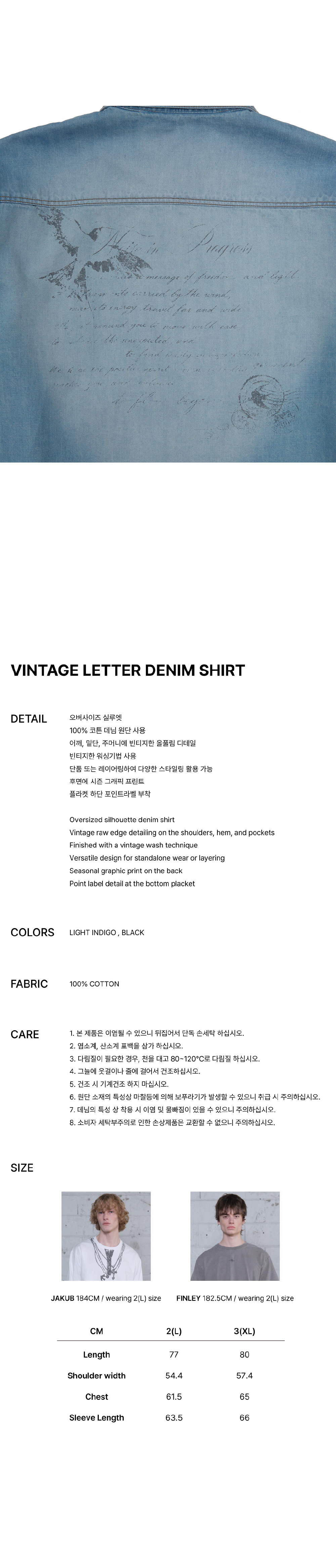 메아 빈티지 레터 데님 셔츠 라이트 인디고