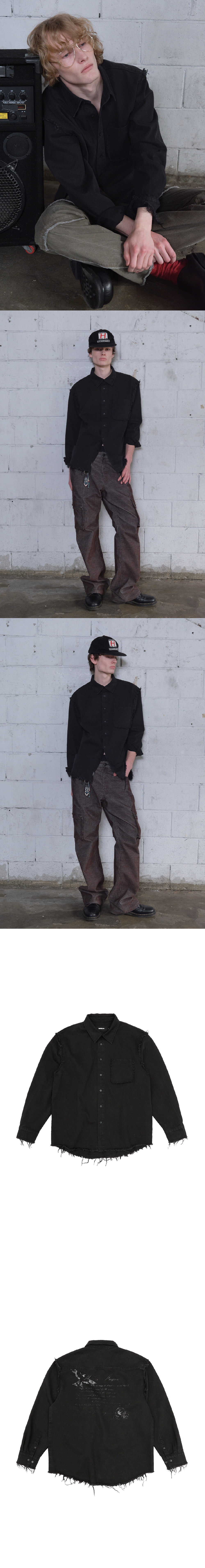 메아 빈티지 레터 데님 셔츠 블랙