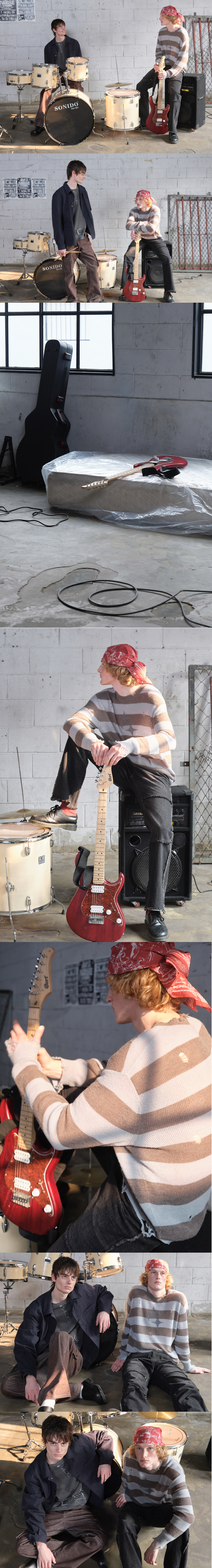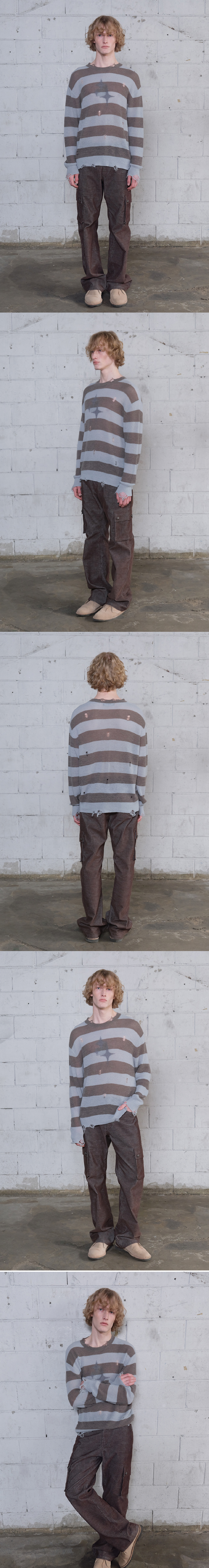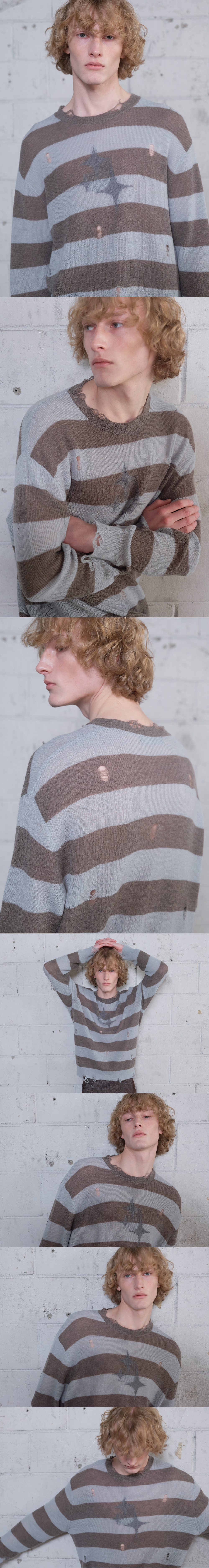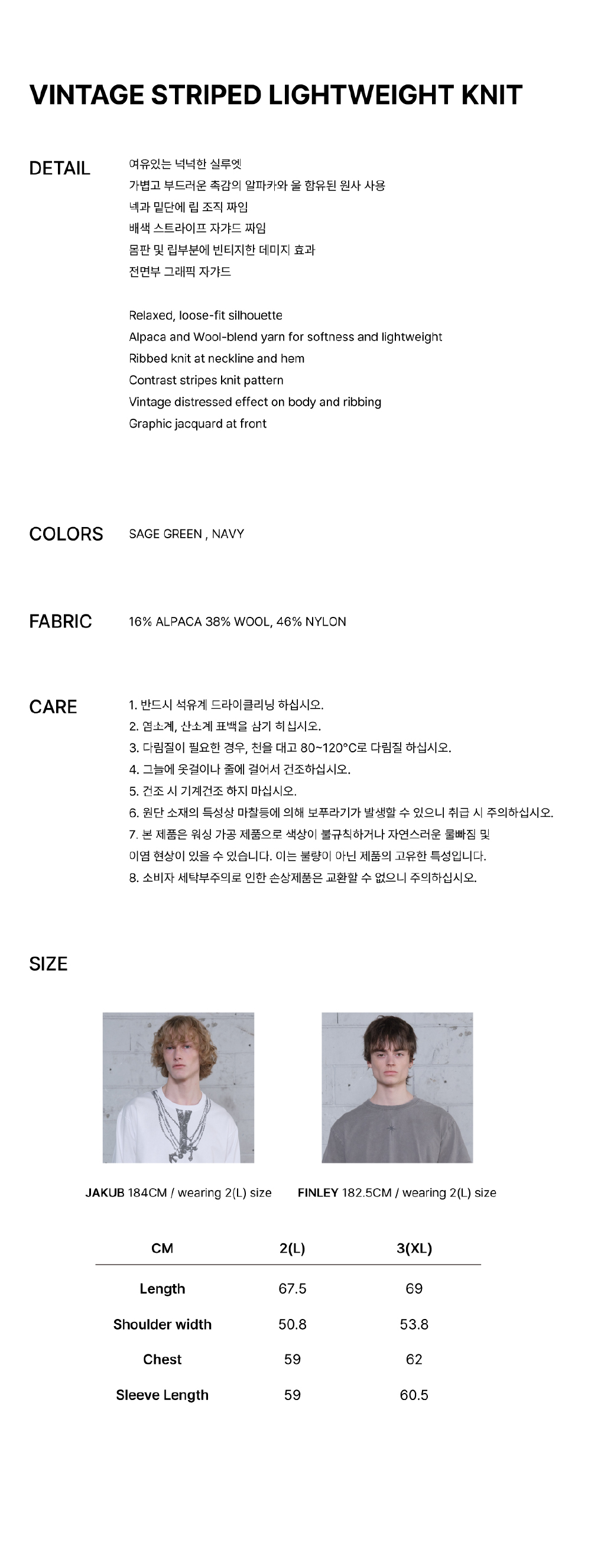 메아 빈티지 스트라이프 라이트웨이트 니트 세이지 그린
