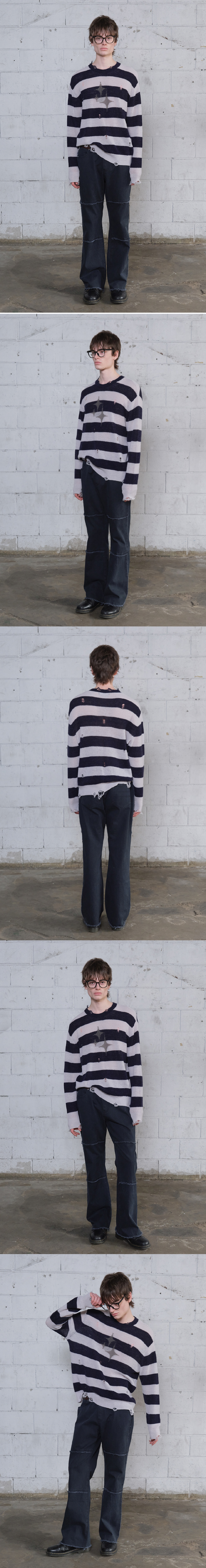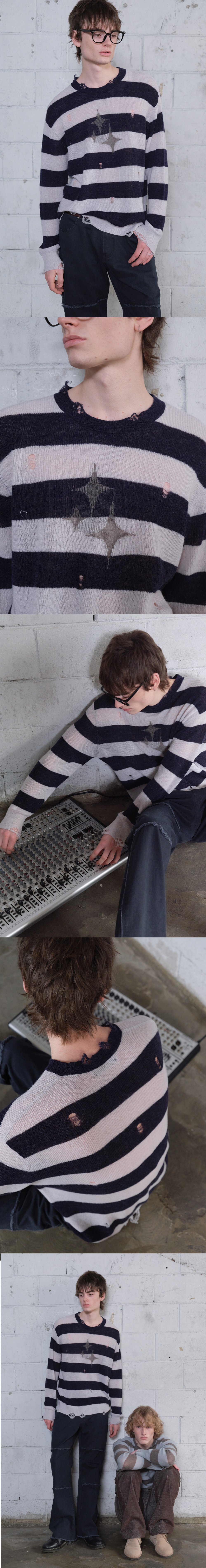 메아 빈티지 스트라이프 라이트웨이트 니트 네이비