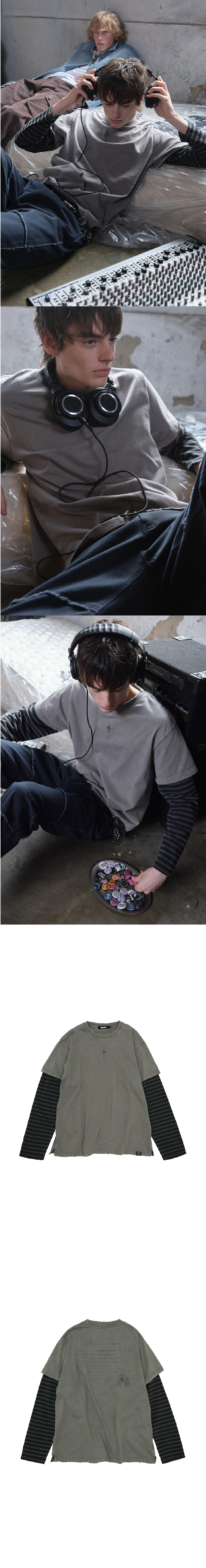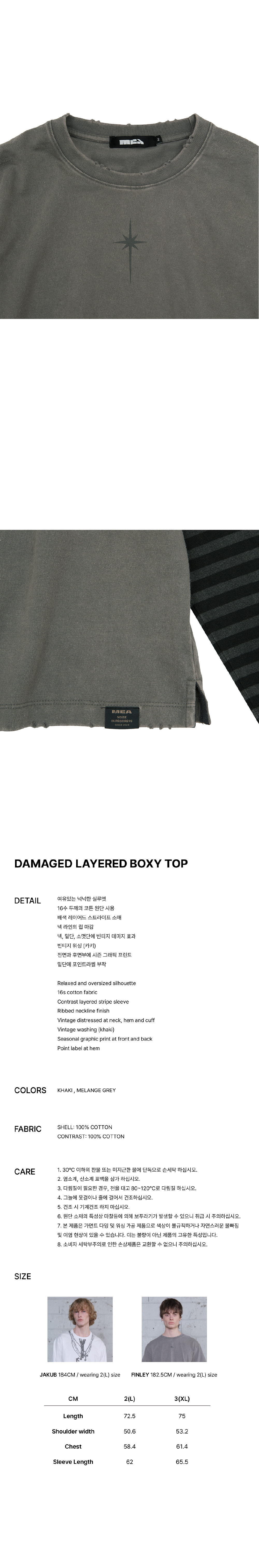 메아 데미지드 레이어드 박시 탑 카키