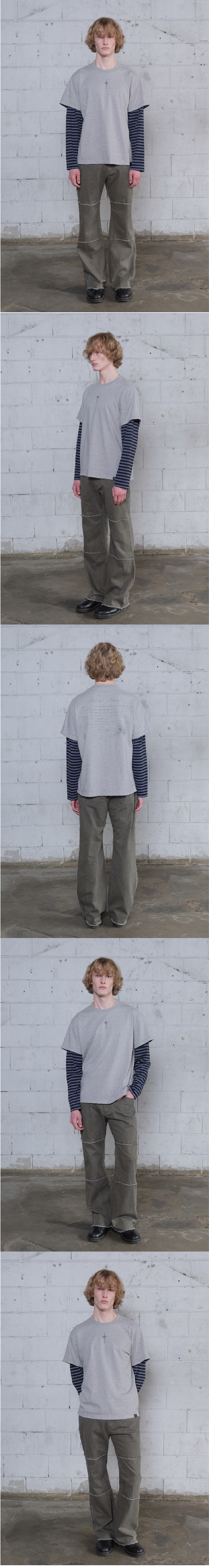 메아 데미지드 레이어드 박시 탑 멜란지 그레이