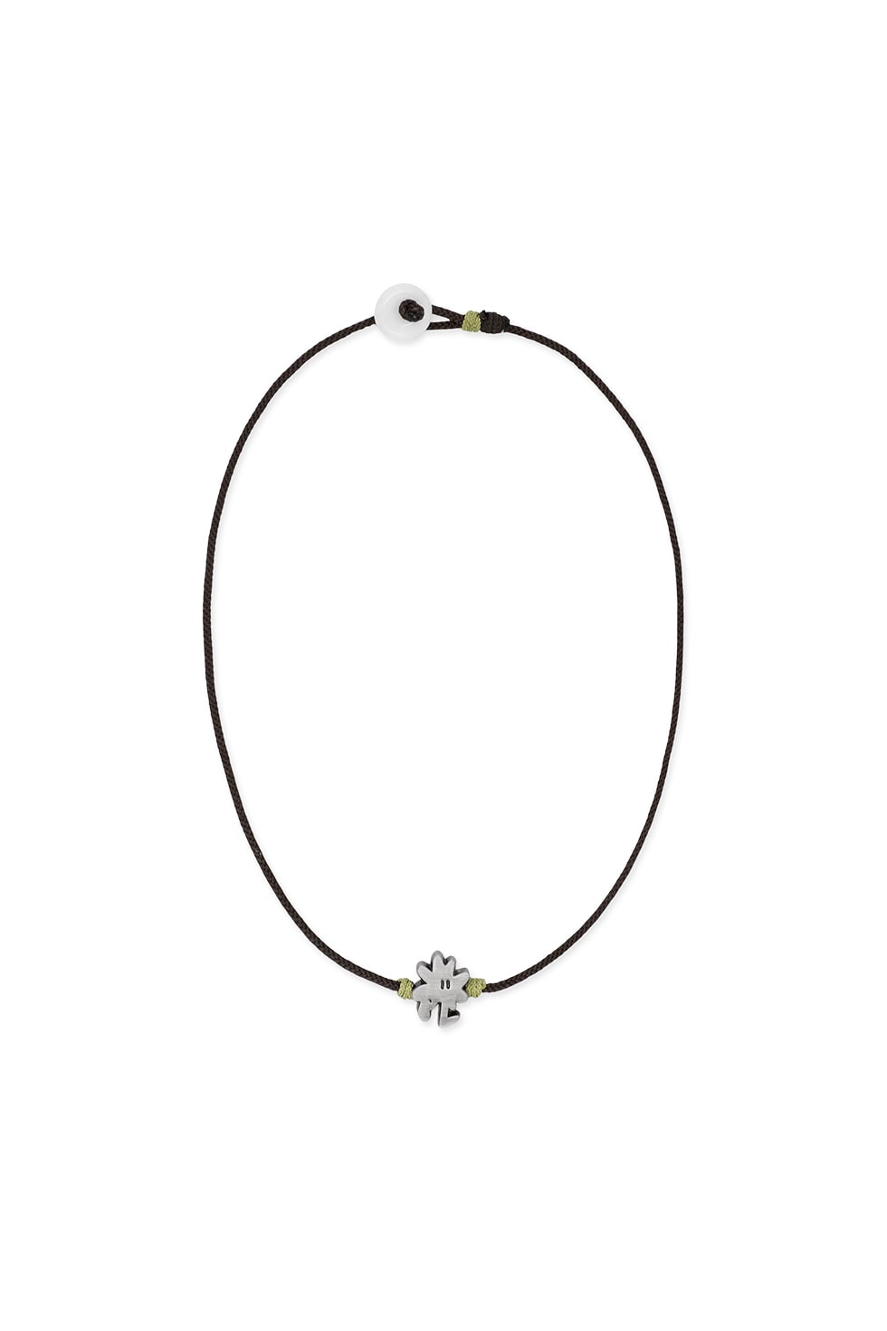 · 코드 목걸이 · 컬러 코드사 사용 · 전면 캘리 쉐입 메탈 팬던트 · 비즈 이음새 디테일 포인트 · 매듭 마감 디테일 · 버튼형 클로징 방식 Shell1: Zinc 100% Shell2 : Jade 100% Shell3 : Polyester 100% Made in China