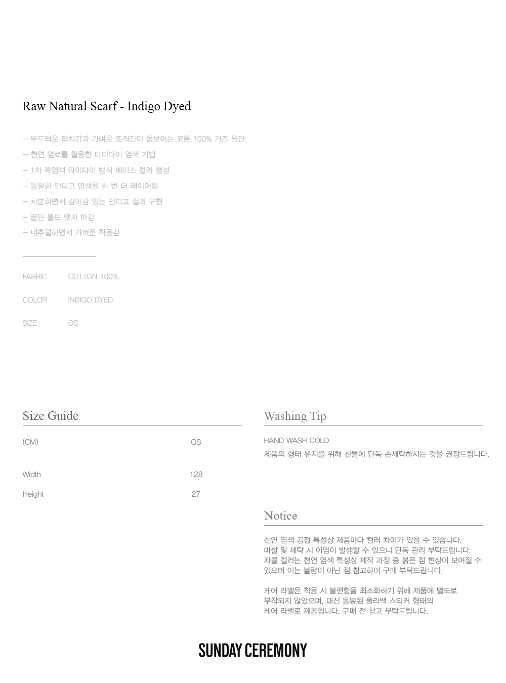 선데이세레머니 로우 내추럴 스카프 - 인디고 다이드