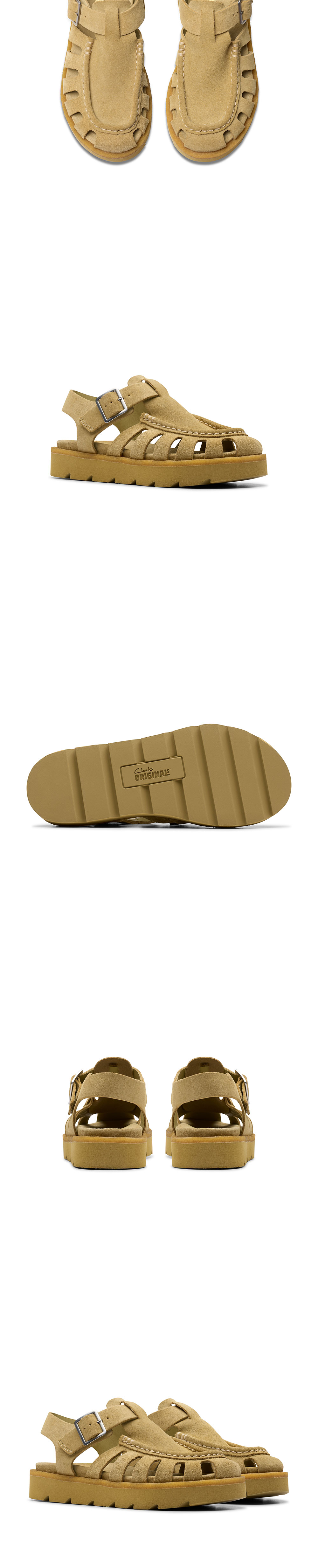 클락스 우먼 메어 버클 다크 메이플 스웨이드 입니다. - 왈라비에서 영감을 받은 피셔맨 샌들 실루엣 - 깊이감 있는 다크 메이플 컬러의 프리미엄 스웨이드 갑피 - 발등의 조절 가능한 버클 스트랩 포인트 - 가볍고 쿠션감이 뛰어난 초경량 EVA 솔 적용
