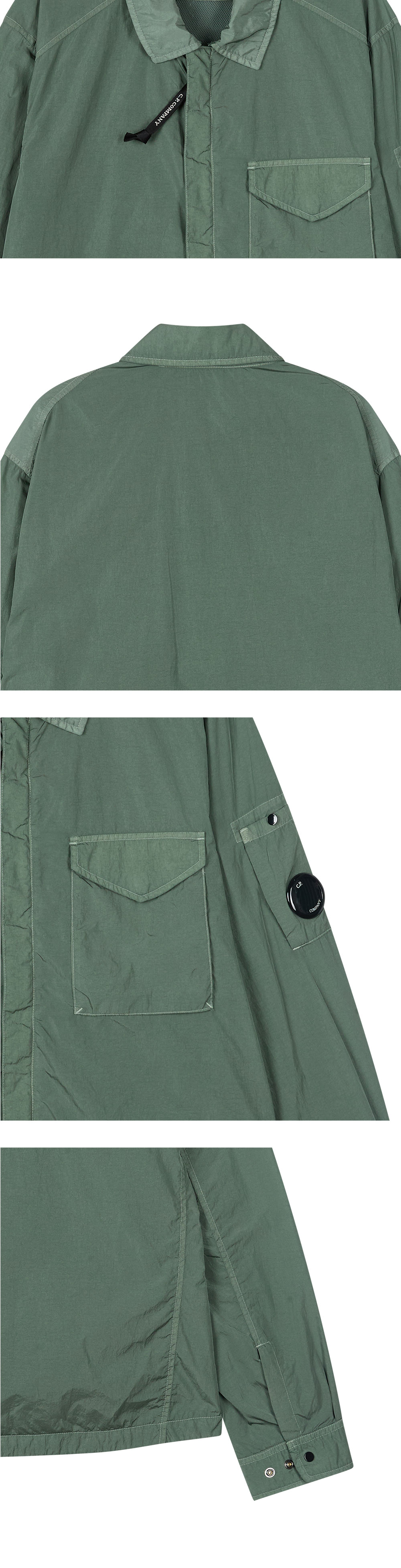 C.P. 컴퍼니 크롬 R 집 렌즈 오버셔츠 로렐 리스 입니다. - 전면 풀 집업 클로저 및 로고 스트랩 풀러 디테일 - 왼쪽 소매 시그니처 렌즈가 포함된 암 포켓 - 전면 가슴 부위 싱글 플랩 포켓 구성 - 클래식한 칼라 디자인과 톤온톤 스티치 라인 - 소매단 스냅 버튼 디테일로 실루엣 조절 가능