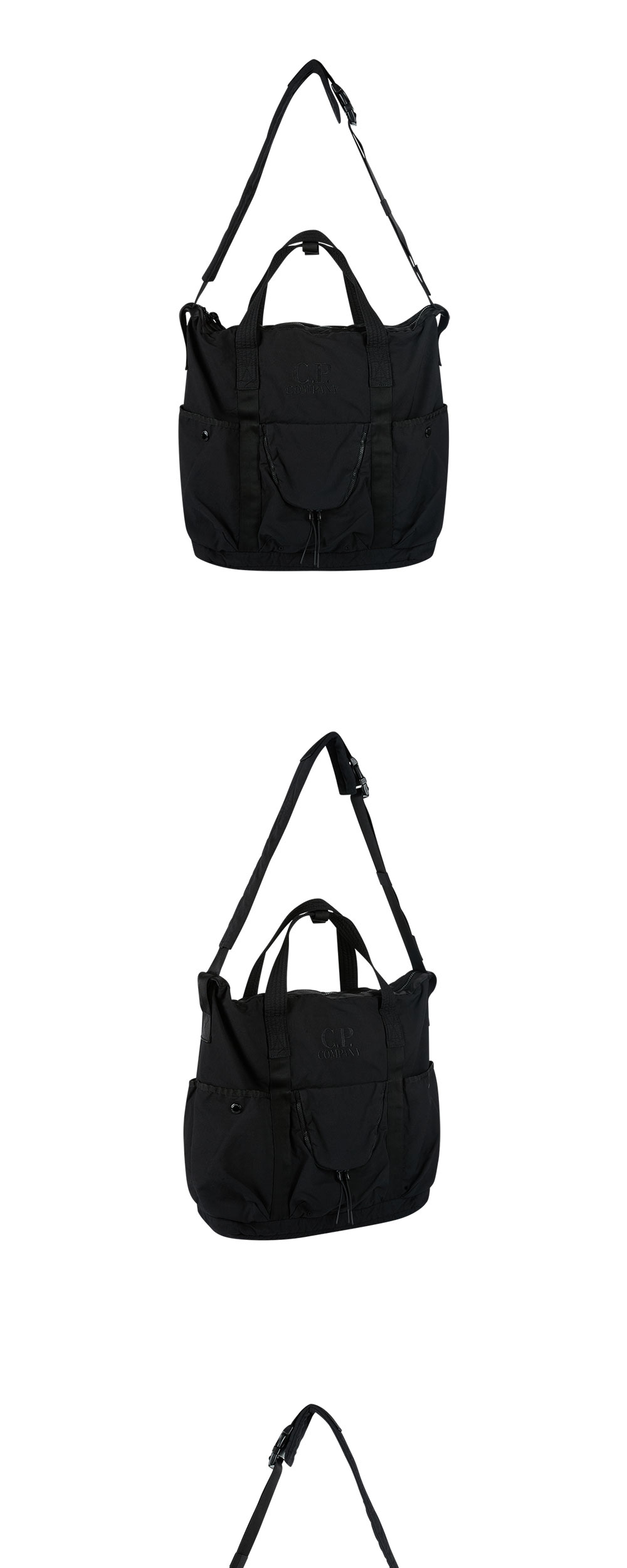 C.P. 컴퍼니 트윌 토트 백 블랙 입니다. - 전면 중앙 C.P. 컴퍼니 톤온톤 로고 자수 디테일 - 토트 핸들과 조절 가능한 숄더 스트랩의 2-Way 디자인 - 전면과 측면의 다양한 수납용 포켓 구성 - 상단 지퍼 클로저 및 내부 보조 포켓 디테일 - 내구성이 뛰어난 트윌 직조 방식의 텍스처