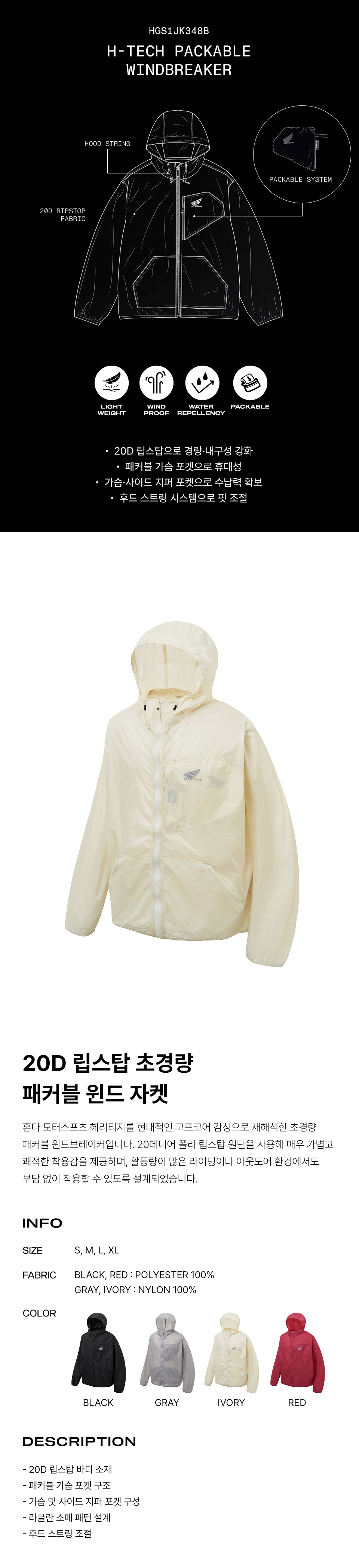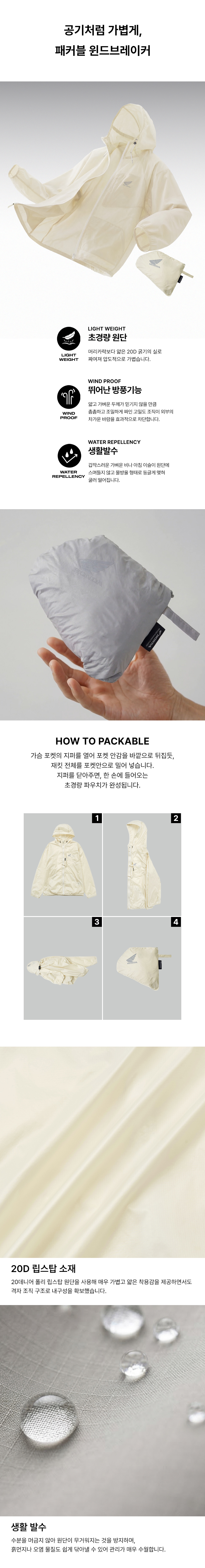 혼다 H-Tech 패커블 윈드브레이커 솔리드 버전 아이보리