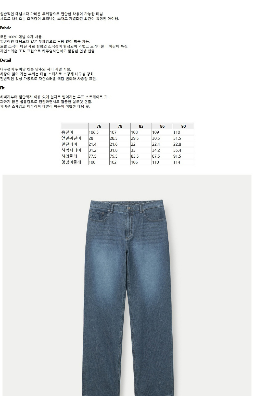시리즈 버티컬 루즈 스트레이트 밴딩 데님 인디고